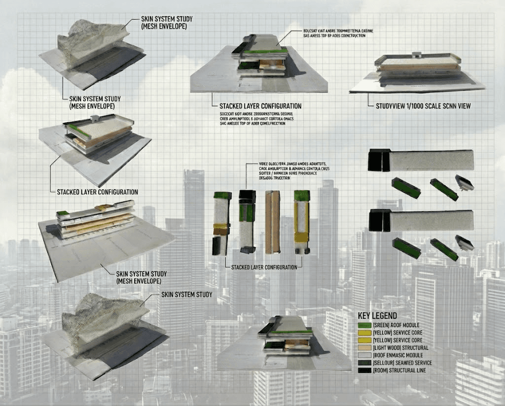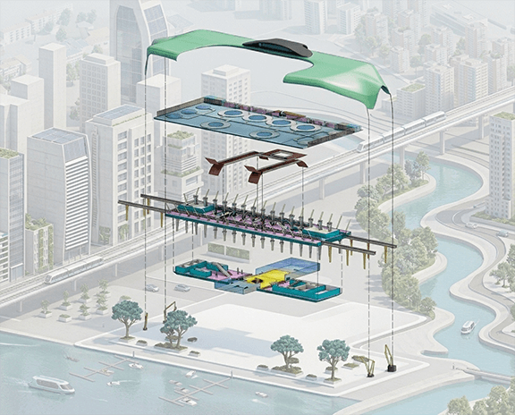 Integrated road, metro, and vertiport systems into a unified framework to ensure seamless connectivity and efficient passenger transitions.Form Development Concept