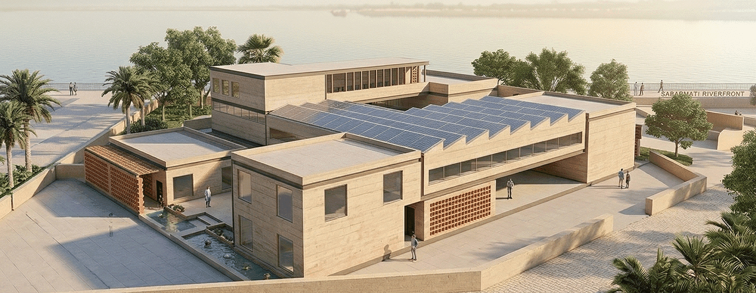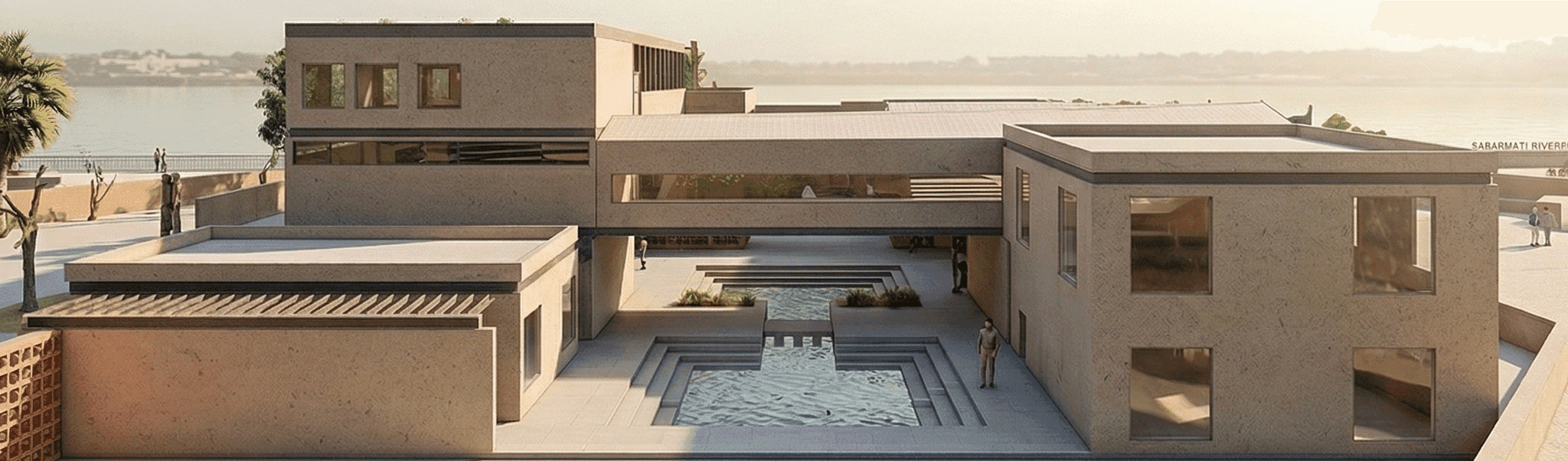 An institutional intervention along the Sabarmati riverfront, engaging with context and public life
